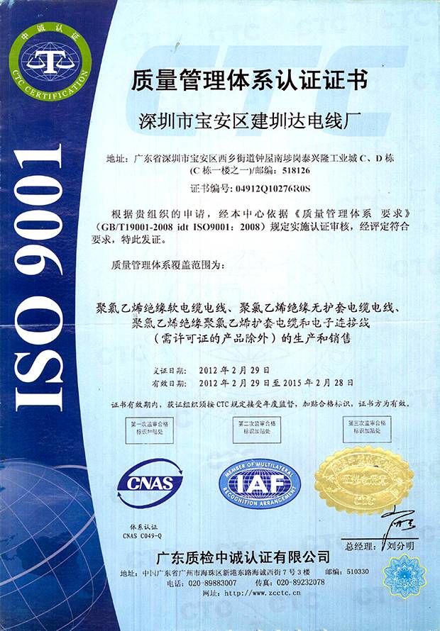 深圳建圳達電線電纜有限公司,成立于2000年,是一家電線電纜制造商,我們通過了世界各地不同市場的多數認證,如:CCC、RoHS、CB、SAA、TUV、VDE、PSE、BPS、UL、CSA。我們根據定制產品不斷更新新的認證。經過數十年的發展,我們與來自世界各地的客戶建立了長期的合作關系。我們曾經是菲律賓機場,,柬埔寨的電力站,美國的醫院,工廠,埃塞俄比亞的水電站項目。我們是一家值得信賴的電線供應商。